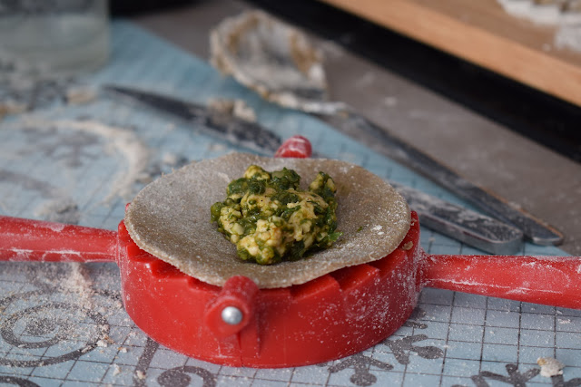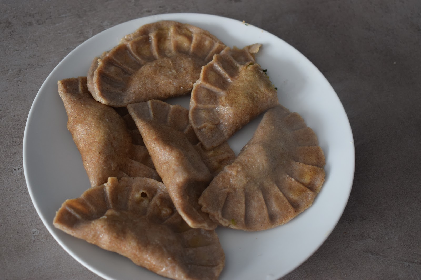 Od jakiegoś czasu postanowiłam zdecydowanie ograniczyć używanie w mojej kuchni mąki pszennej. Nie za bardzo wiedziałam czym ją zastąpić, gdyż mojej poprzednie eksperymenty z różnymi typami mąk kończyły się raczej kiepsko. Jednak robiąc zakupy w Lidlu wpadła mi ręce mąka żytnia pełnoziarnista – postanowiłam jej wypróbować. Okazała się strzałem w 10! Nadaje się do wypieków czy zagęszczenia zupy lub sosu. Zrobiłam z niej nawet pierogi a w planach mam jeszcze domowy makaron. Dzisiaj jednak chcę Wam pokazać przepis na domowe pierogi z tej mąki. Nadzienie to połączenie kurczaka oraz szpinaku. Warto je ostrzej przyprawić by smak nie okazał się za mdły. Mają fajny ciemnobrązowy kolor i smak też zdecydowanie różni się od tych tradycyjnych – jak dla mnie są bardzo nietypowe ale bardzo smaczne.