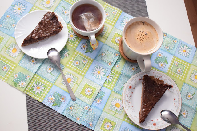 Ciasto jest bardzo kruche i charakterystyczne w smaku a krem smakuje jak najprawdziwsza czekolada – jest słodki (mimo braku cukru) a jednocześnie delikatny – rozpływa się w ustach. Ciasto przechowuję w lodówce jednak przed spożyciem warto warto wyciągnąć je chwilę wcześniej.