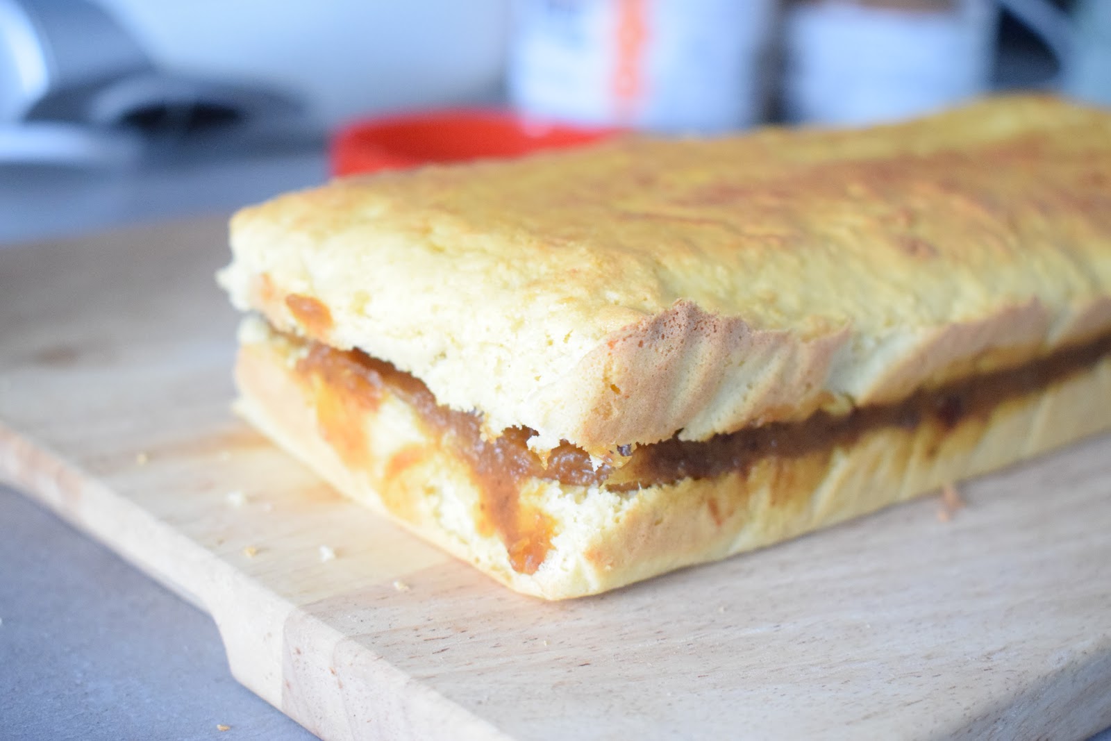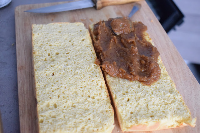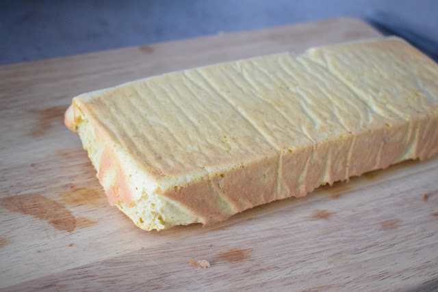 Kiedy biszkopt jest już wystudzony dzielimy go na dwie części.