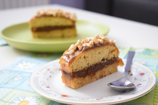 Ciasto na mące kokosowej jest bardzo delikatne oraz aromatyczne. Dodatek masy daktylowej sprawia, że smakuje jak karmel. Polewa z masła orzechowego nadaje dodatkowo wyrazisty posmak.