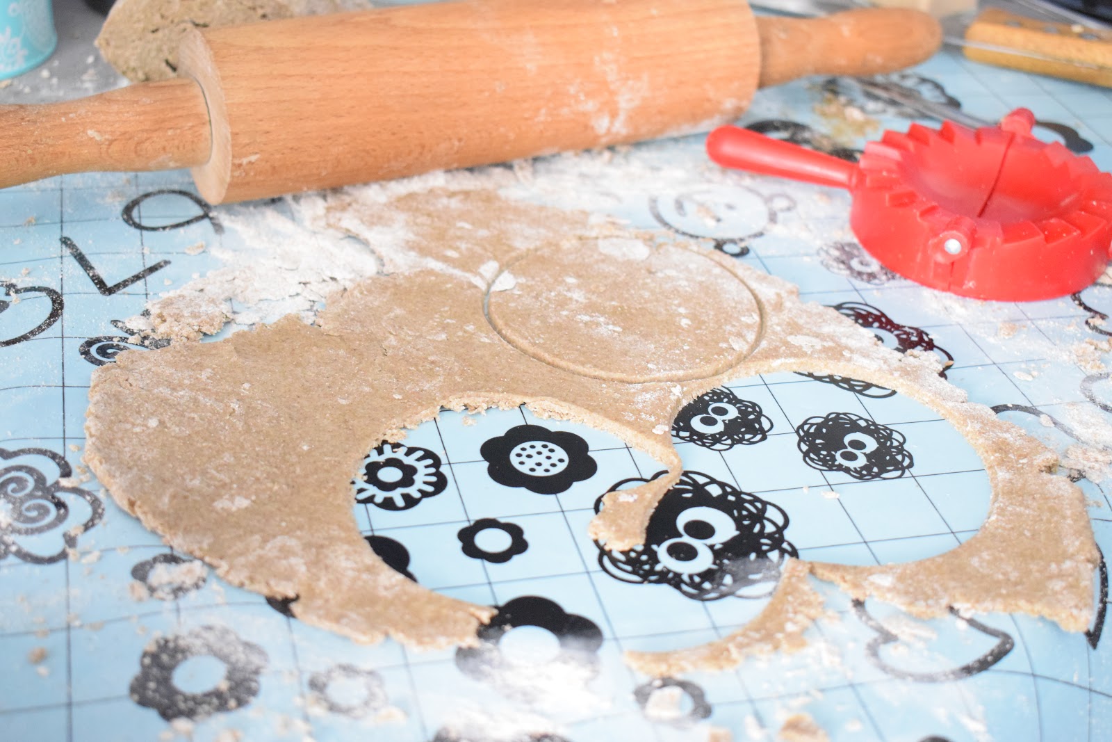 Na stolnicę wsypujemy mąkę. Dodajemy jajko oraz powoli dolewamy wodę oraz olej. Całość dokładnie zagniotłam. Dzielimy na mniejsze kawałki z których każdy rozwałkowujemy i wycinamy kształt pieroga.