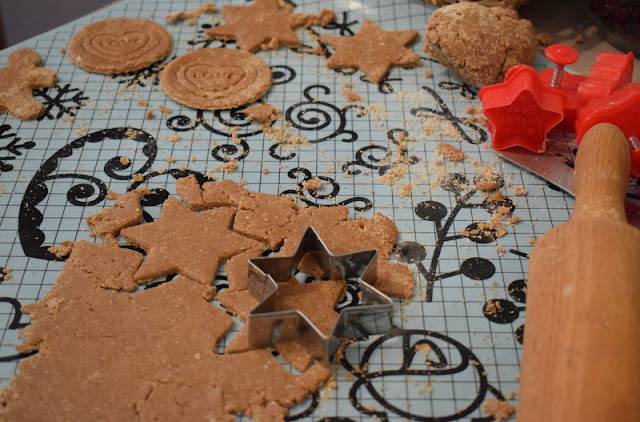 Po tym czasie wyciągamy ciasto z lodówki. Dzielimy na mniejsze części. Każdą z nich rozwałkowujemy dowolną grubość ( w zależności jak chcemy). Następnie wykrawamy dowolny kształt.